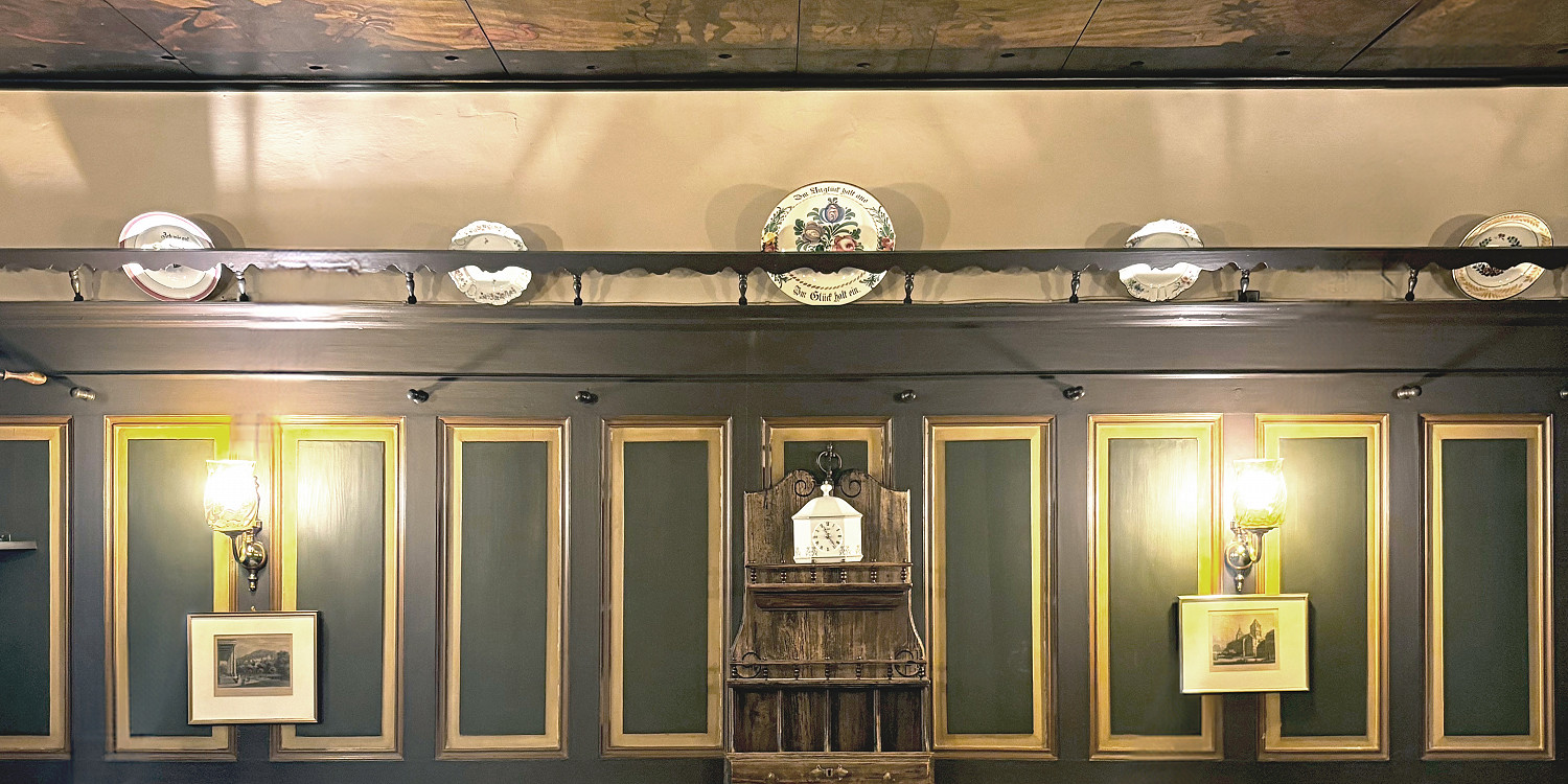 Denkmalgerechte Überarbeitung aller Oberflächen im Gasthaus und der Außenfassade, sowie Neuorganisation des Servicebereiches, Farbkonzept aller textiler Oberflächen inkl. Lichtplanung.