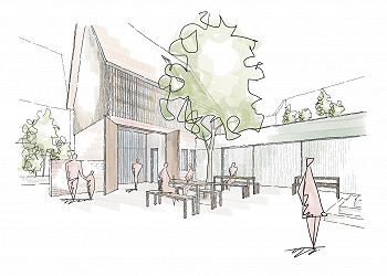 Gestaltungskonzept für verschiedene Gebäudeteile und Sanierungsmaßnahmen.