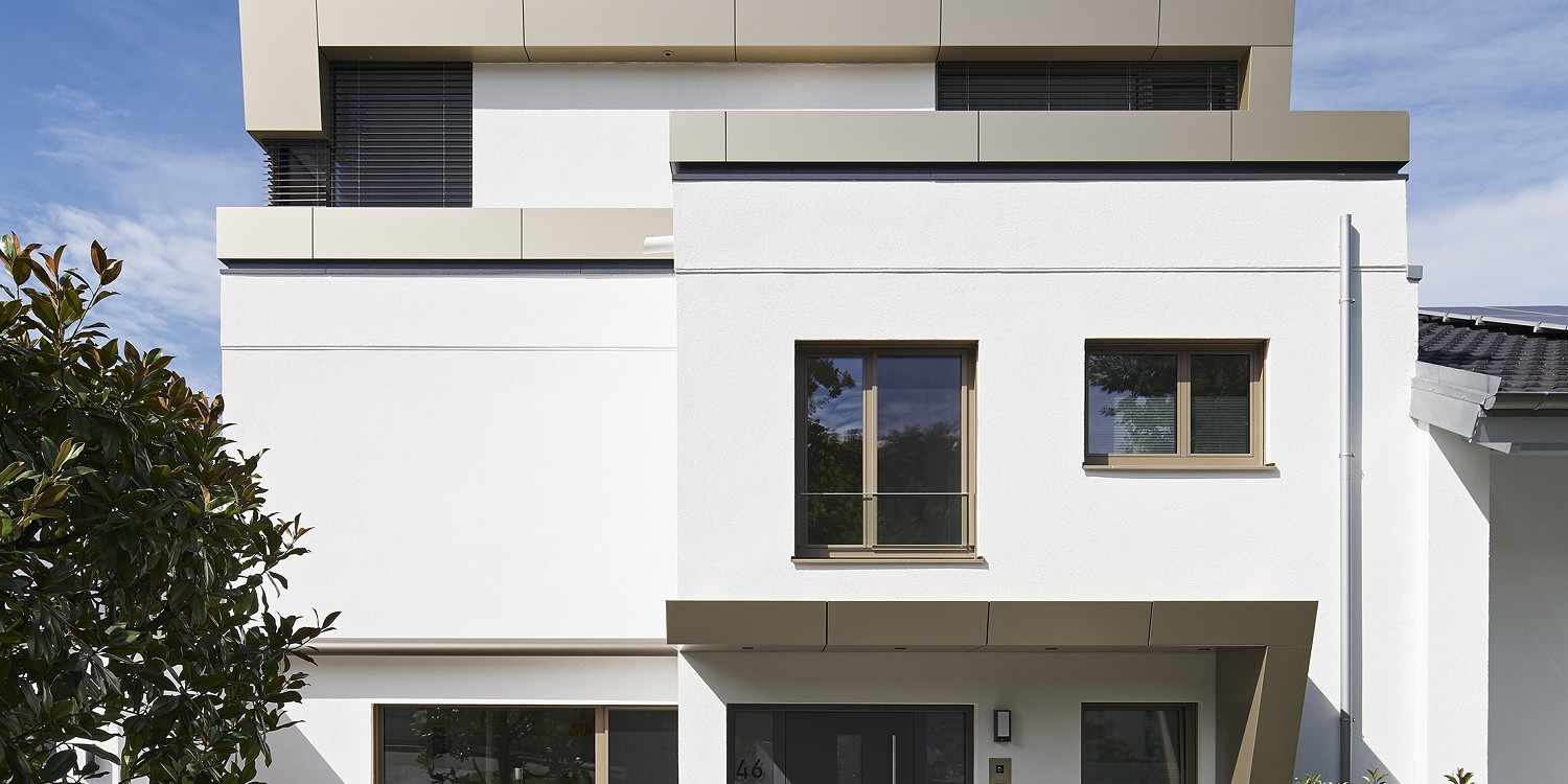 Der bereits im EG eingebrachte neue Fliesenbelag wurde in die Bäder und Sanitärbereiche der Obergeschosse übertragen, die weiteren Böden wurden mit einer Fußbodenheizung und Parkettbelag ausgestattet. Die Heizungsanlage wurde entsprechend erneuert und die Bäder auf allen Stockwerken modernisiert. Alle bestehenden Fenster wurden ausgetauscht und in den Wohnbereichen durch Holz-/ Alufensterelemente ersetzt. Zum Teil wurden die Bestandsöffnungen erweitert, das Garagentor wurde ausgetauscht und die Fenster mit Raffstoren versehen und die Außenflächen im Vorgartenbereich neu geordnet.