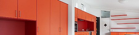 Die Gebäude der Rennbuckel-Realschule wurden durch einen Raumtausch konzeptuell neu strukturiert. So wurden die Lehrküche das Lehrerzimmer und ein Klassenraum versetzt und gleichzeitig überarbeitet. Herzstück der einzelnen Nutzungen sind die angepassten Einbaumöbel, die den Bedürfnissen der Nutzergruppen angepasst sind. Dazu gehören neben der Lehrerlounge und Schul-Kiosk auch die Einbauschränke sowie die maßgeschneiderte Teeküche im Lehrerzimmer. Farblich zeichen sich die neuen Möbel als raumbildende Elemente in Weiß und Grün ab wobei glatte schlichte Oberflächen das Gesamtbild vervollständigen.