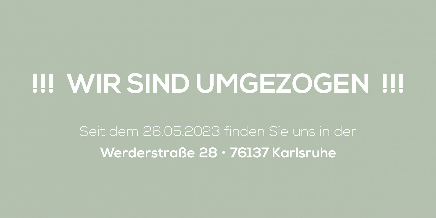 Am 26.05.2023 haben wir unsere neue Bürofläche bezogen. Sie finden uns künftig in der Werderstraße 28 | 76137 Karlsruhe.